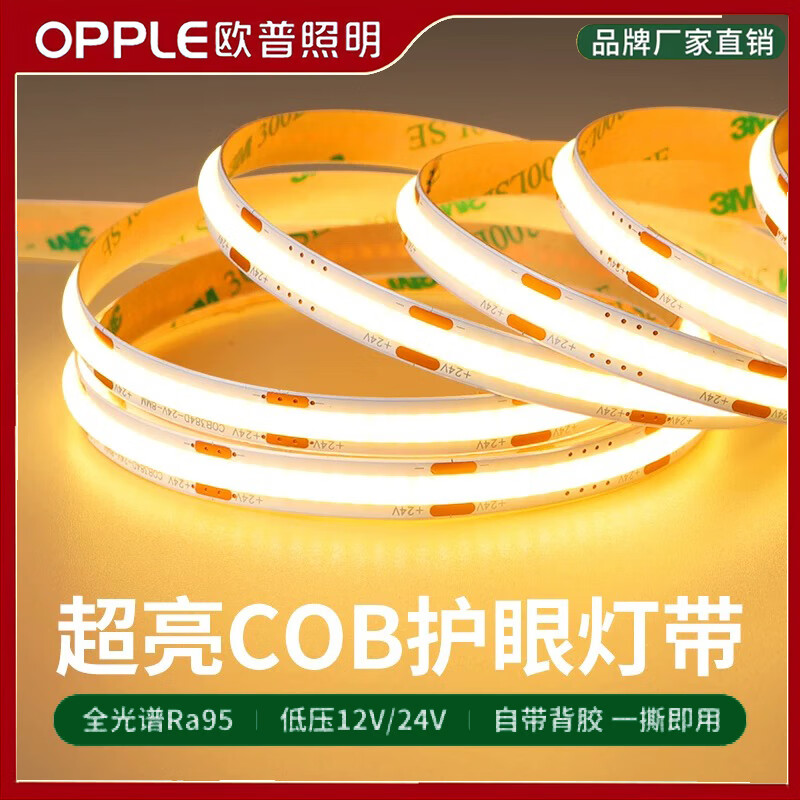 欧普照明(OPPLE)COB低压24v自粘背胶超亮灯带条客厅卧室吊顶无频闪led柔性线形灯 暖白光4000K 欧普变压器400W可接20米内