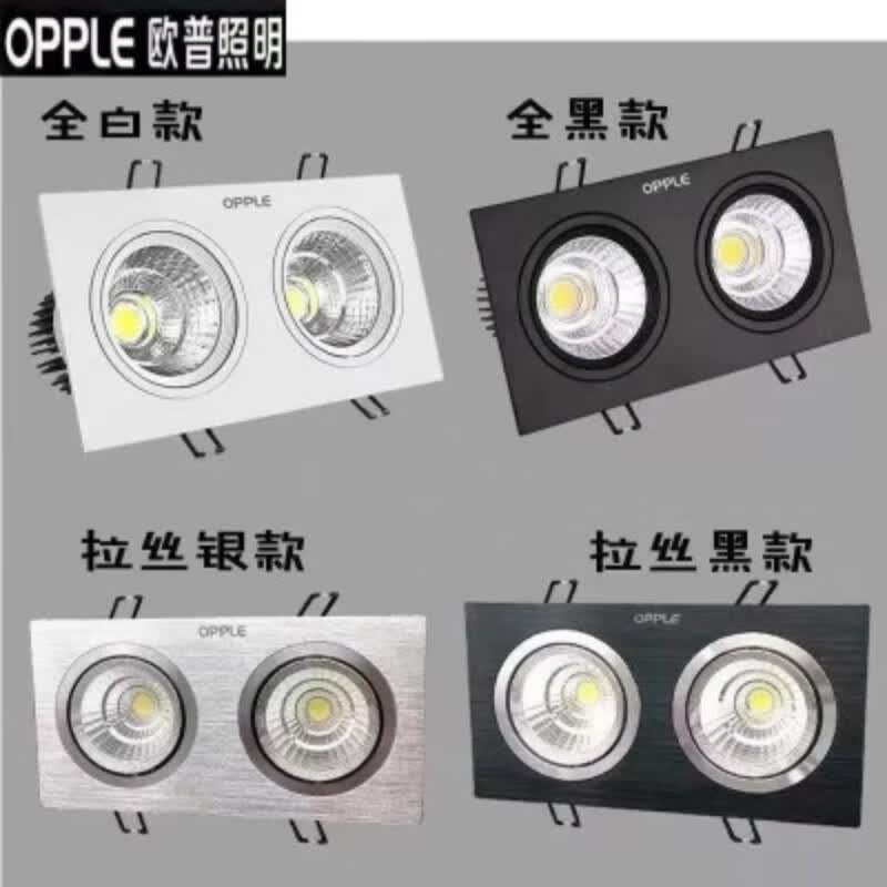 欧普照明led双头斗胆灯嵌入式长方形格栅商铺餐饮店吊顶COB双头射灯10x20 漆黑款/三色变光 20W/开孔10x20cm