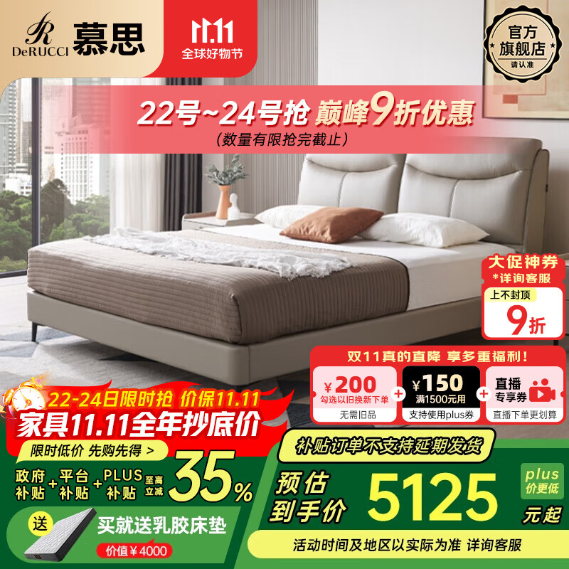 慕思(de RUCCI)皮床现代简约主卧大床双人床软包 BCW1-072皮床深米色1.8*2米逐梦