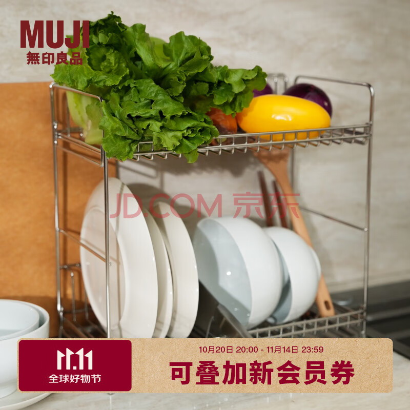 无印良品 MUJI 不锈钢 双层沥水篮 长方形水槽厨房沥水架 碗架 MC41CC1S 银色 约长38.5X宽23.3X高36cm