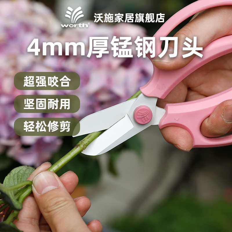 沃施worth花艺剪刀园艺锰钢宽头家用修枝剪包胶花剪修花修枝工具