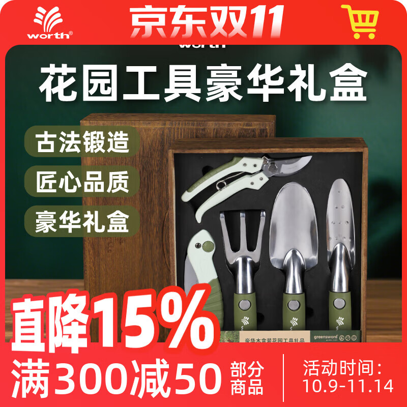 工具套装礼盒三件套 沃施worth园艺家用工具组套铲子