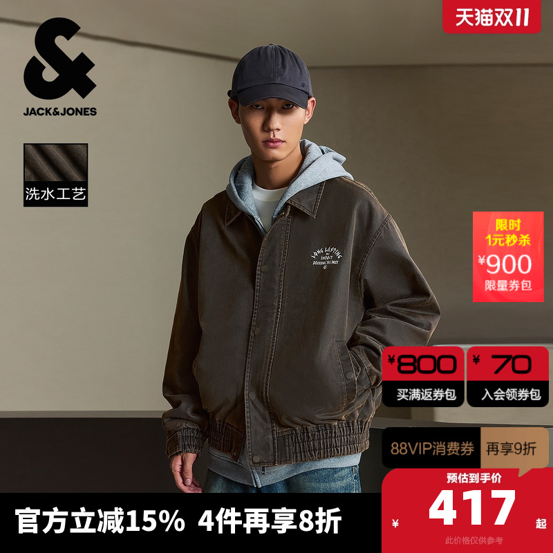 E11巧克力蛋糕 170/92A/S 杰克琼斯男装夹克秋季日常百搭棒球服字母图案装饰洗水款长袖上衣