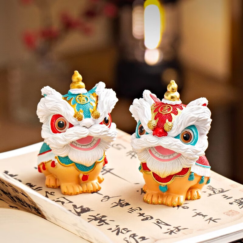 木易Mui国潮佛山舞狮醒狮创意摆件高级感小众桌面茶桌装饰工艺品生日礼物 瑞狮呈祥(红色描金雄狮)