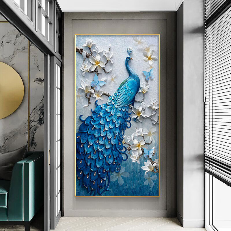 艾格辰入户客厅玄关装饰画现代简约竖版背景墙壁画走廊过道挂画孔雀晶瓷 吉祥孔雀 40*80晶瓷平面+加厚铝合金边框