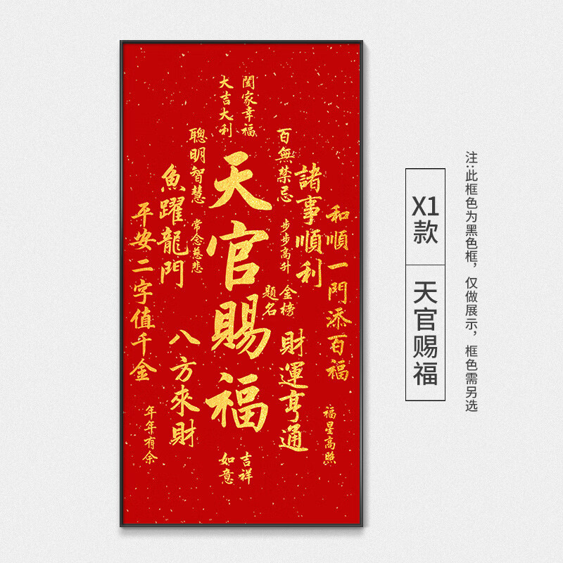 艾格辰天官赐福挂画新中式吉祥喜庆客厅装饰画中堂餐厅玄关书房茶室壁画 X1款:天官赐福 整体尺寸:40*80CM-亮面晶瓷+金框