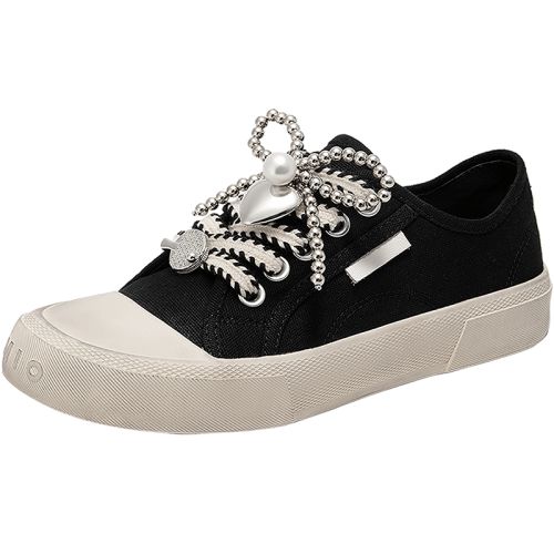 黑/白色 35 MIO米奥2025春季新款百搭休闲鞋做旧板鞋金属珠链装饰时尚女鞋