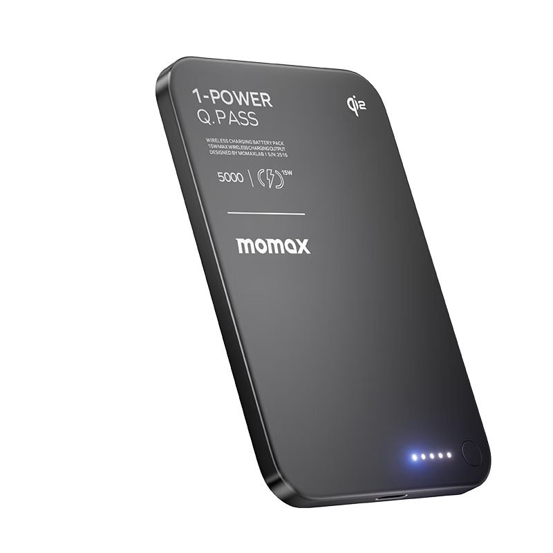摩米士(MOMAX)【QI2+3C认证】磁吸充电宝超薄magsafe无线适配苹果17promax/16/15/14快充可上飞机移动电源 黑色