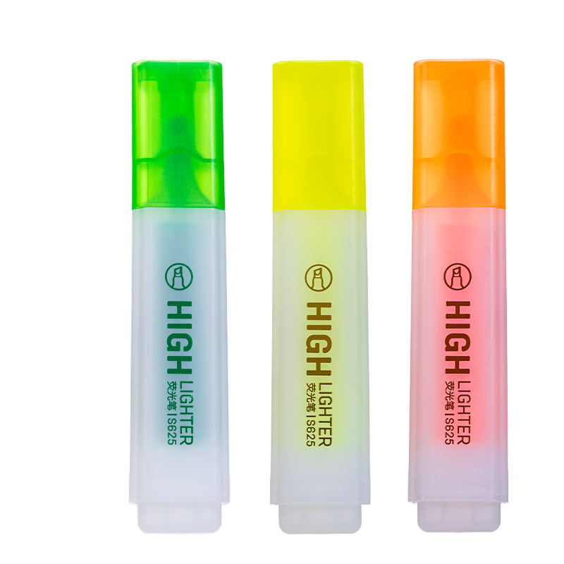 得力(deli)大容量手3色荧光笔 学生考试重点醒目标记笔 办公记号笔帐可用 3支/盒 S628-3