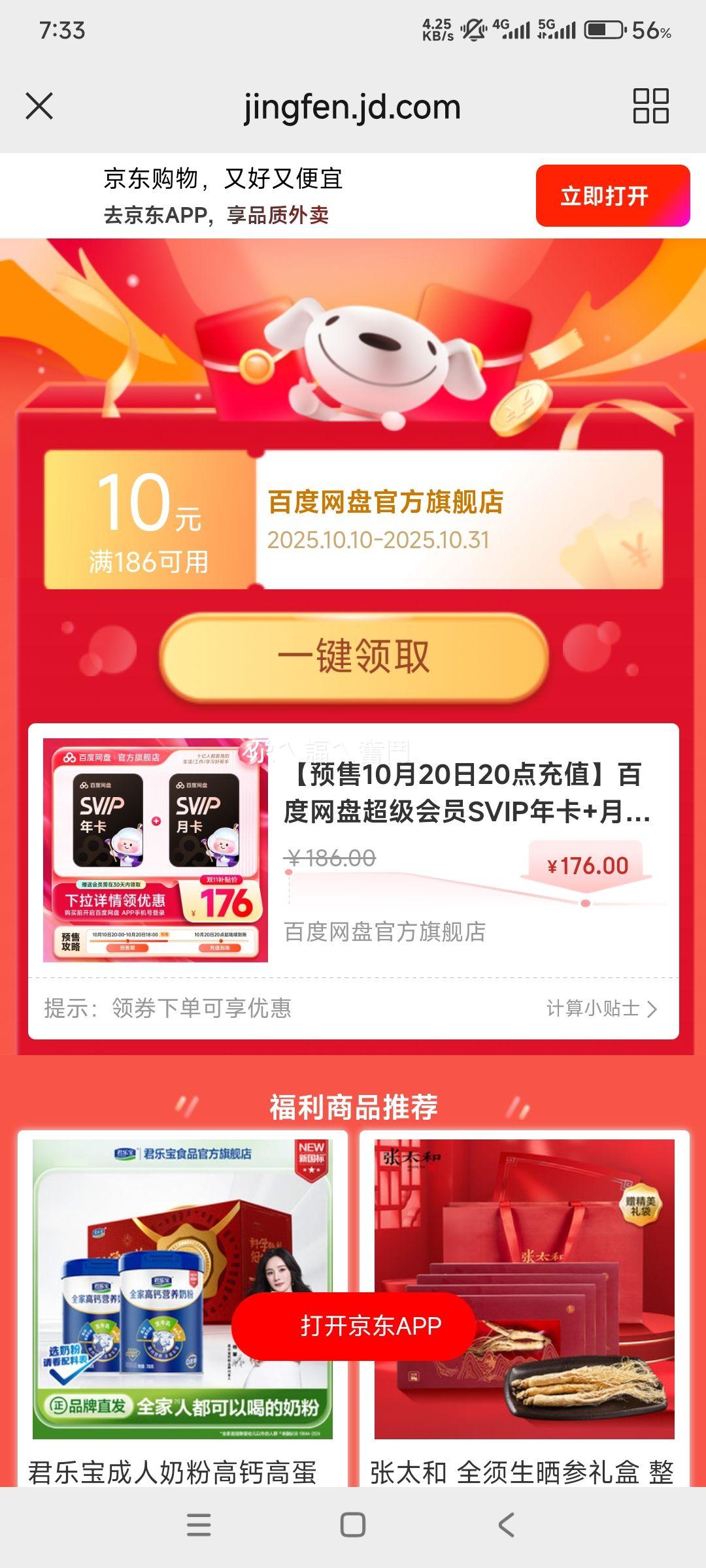 闭眼买:【预售10.20 20点】百度网盘超级会员SVIP年卡+月卡 到手13月卡 极速下载 5T空间