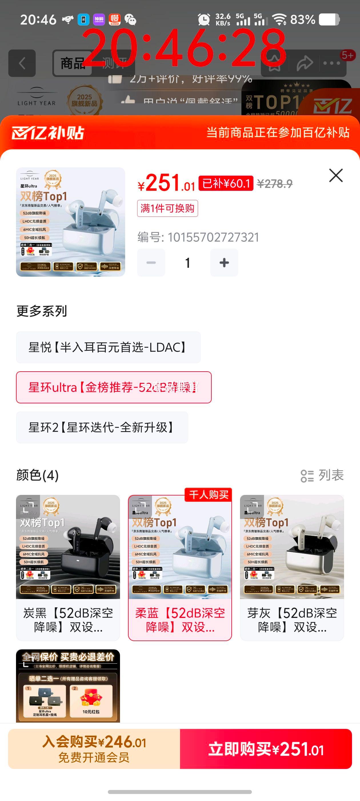闭眼买:籁特易耳 星环ultra 蓝牙耳机 柔蓝