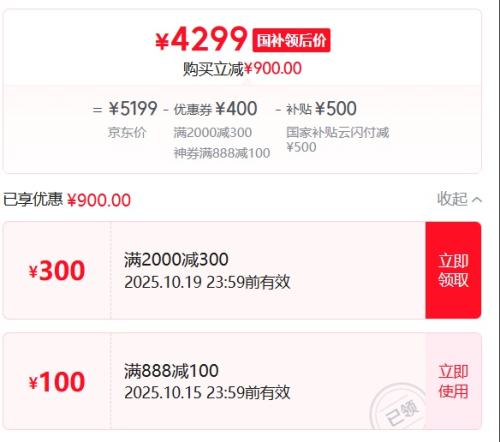 4299元(需领券)
