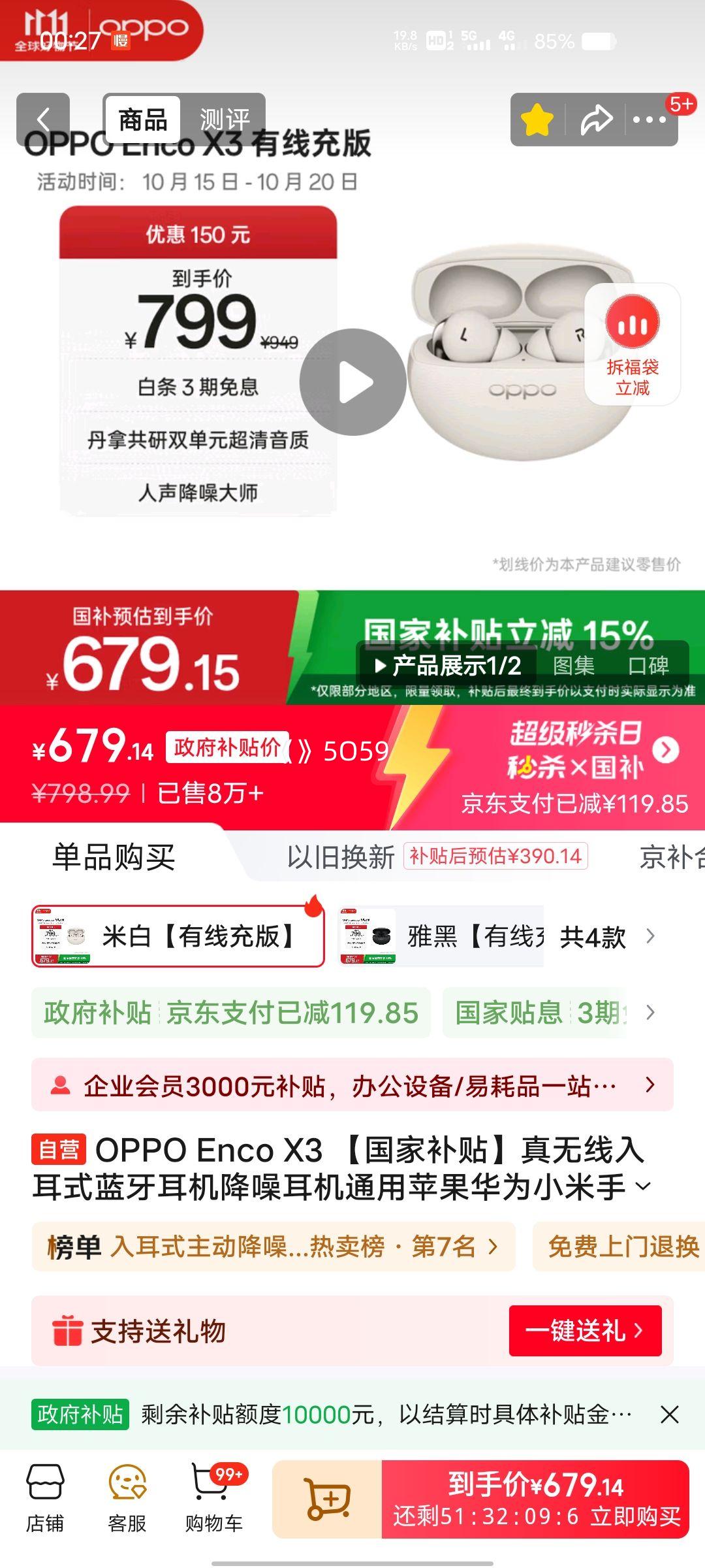 OPPO Enco X3 蓝牙耳机 米白 有线充版