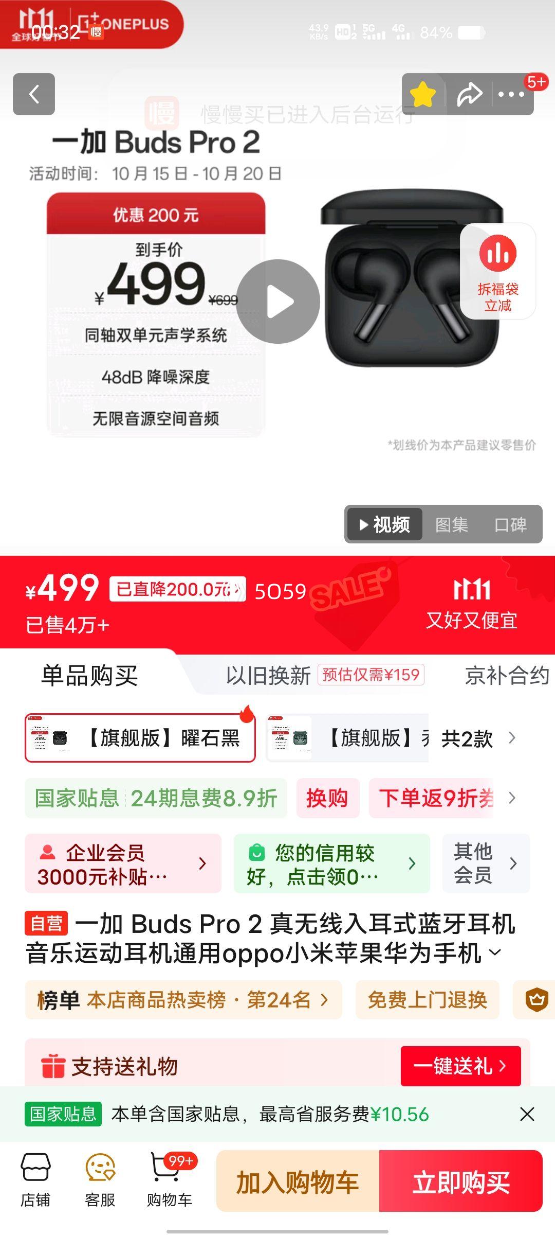 ONEPLUS/一加 Buds Pro2 蓝牙耳机 主动降噪 曜石黑 旗舰款