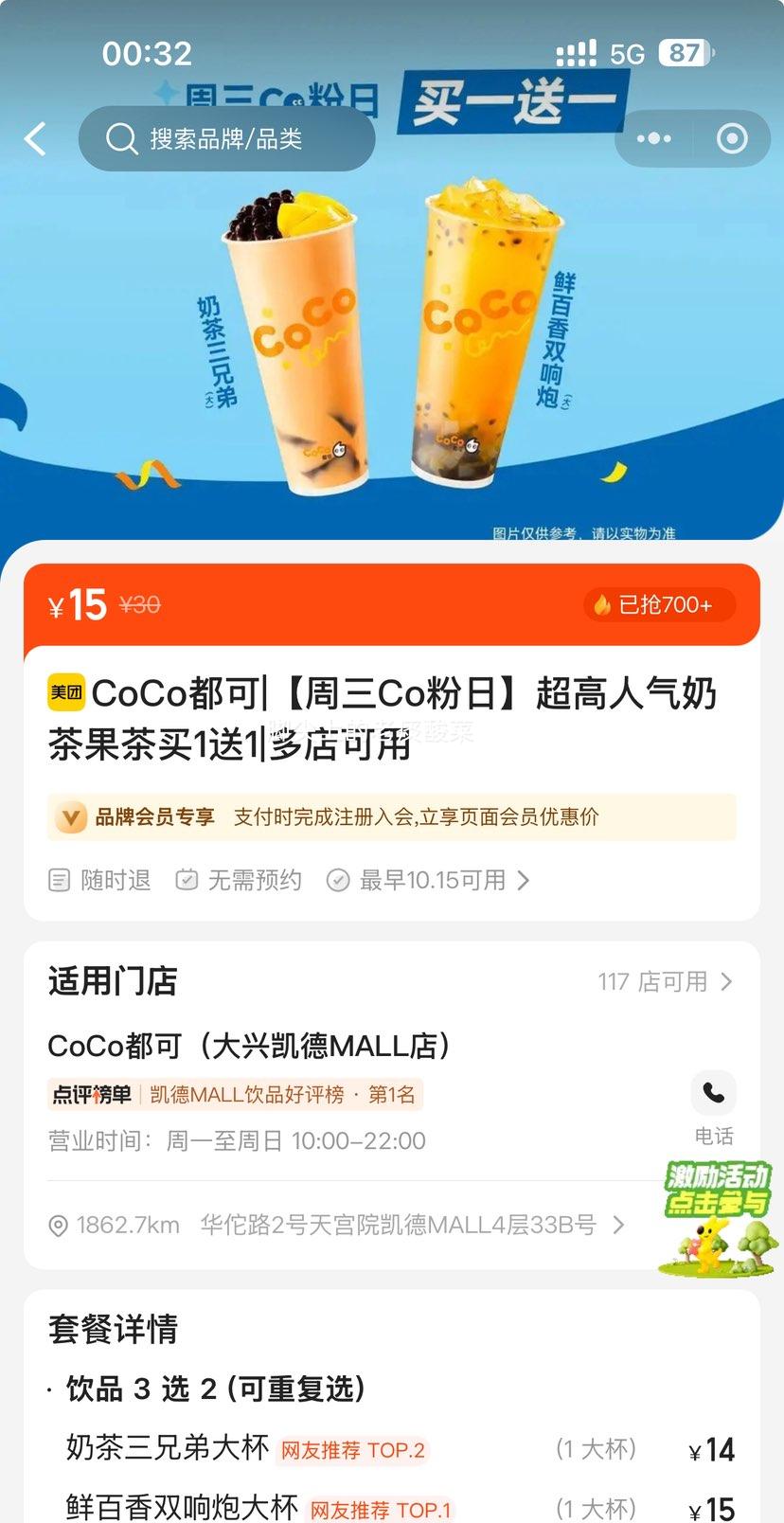 ??【CoCo都可】周三Co粉日买1送1 ??到手价15元,享受双倍美味 ??招牌清香茉莉轻乳茶,清香怡人 ??口味榜TOP,7天热销100+ ??速抢限量福利>> 特惠倒计时?