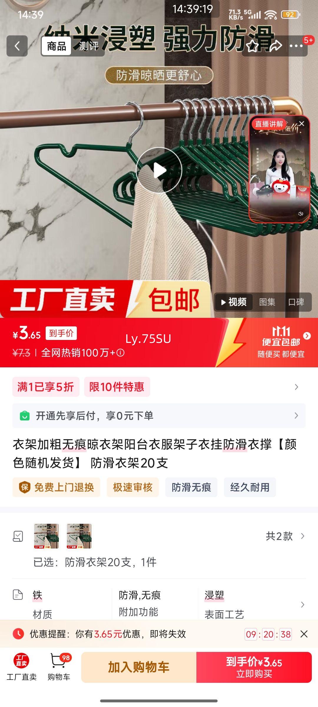 闭眼买:衣架加粗无痕晾衣架 防滑衣架20支