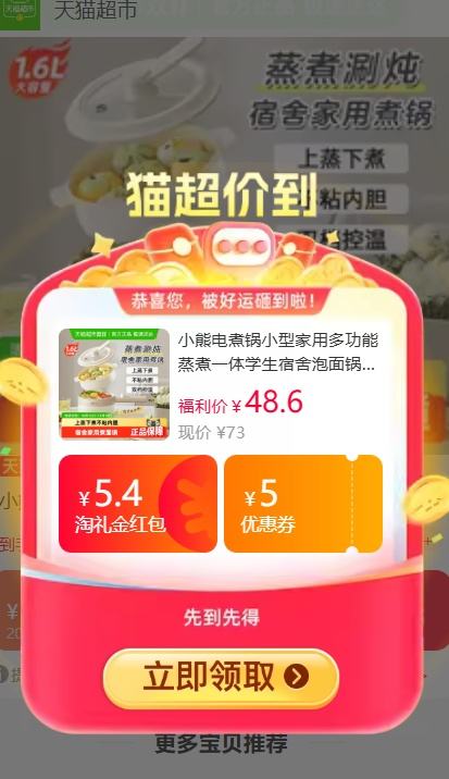 1467.2元2瓶 折合733.6/瓶 历史新低!(需淘金币、充值天猫超市卡)