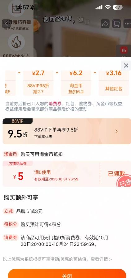 淘宝 双11无门槛9折 开门红消费券 至高抵(50/150/500)10.20 20点生效(领取链接)