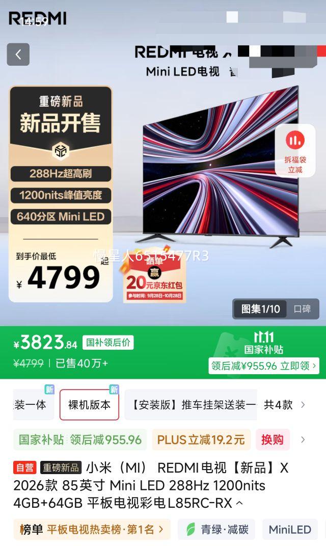 PLUS会员: MI/小米 X 85英寸 电视 L85RC-RX