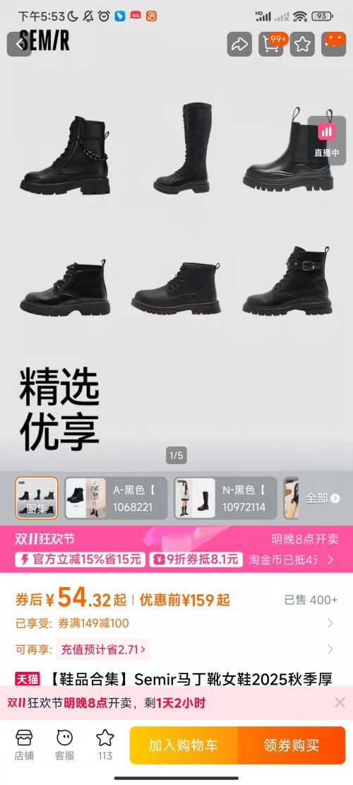 再降价、20号20点:Semir森马 男女士马丁靴/工装鞋等