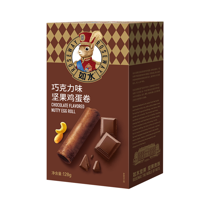 如水食品 如水巧克力味坚果鸡蛋卷128g/盒(赠40g)