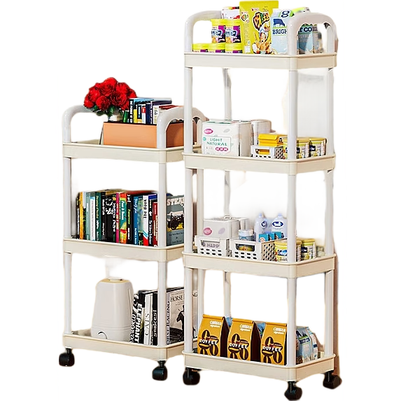 京东物流 小推车置物架收纳用品多层落地厨房置物架客厅零食书架 3层 四滑轮小收纳架-三层灰白色