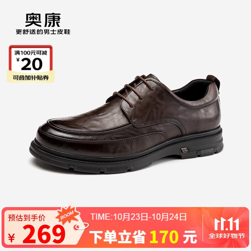 奥康(Aokang)牛皮系带皮鞋男英伦风正装商务鞋子男棕色44码