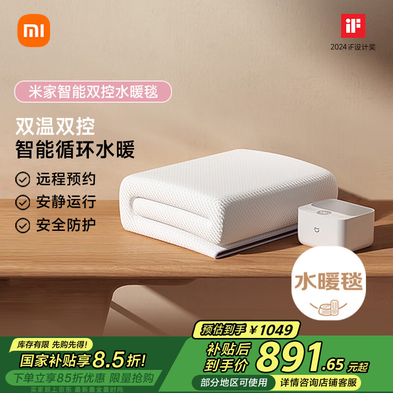 米家 双人智能速热水暖毯 1.8*2米 双温双控