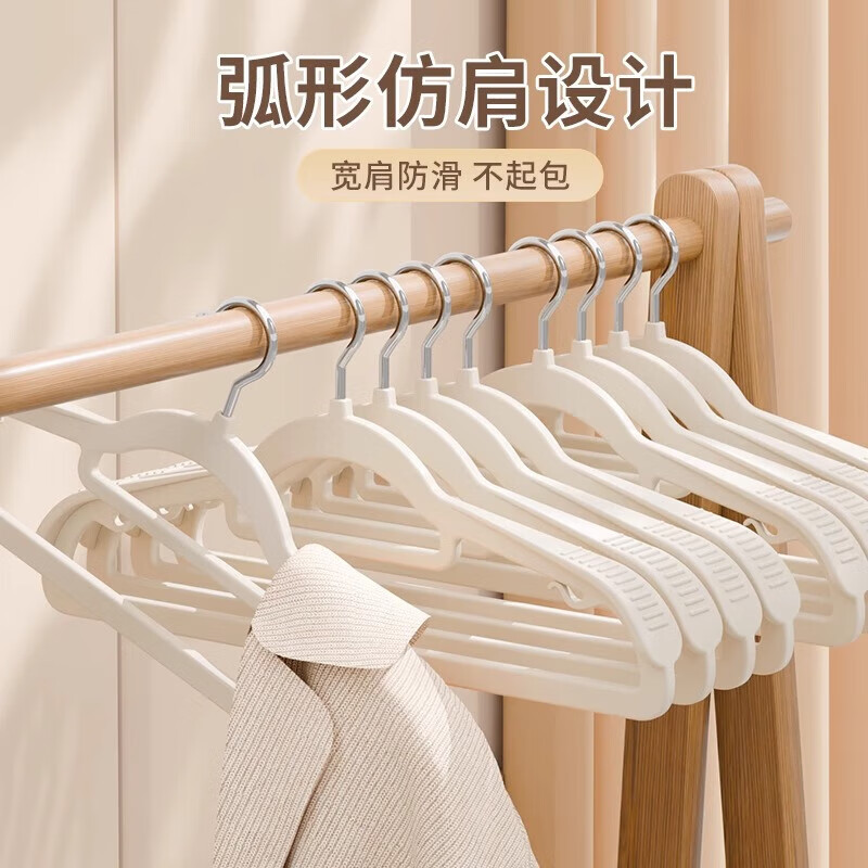 法洁诺衣架家用衣服架子无痕防肩角防滑不起包大衣晾晒加厚宽肩奶白10个