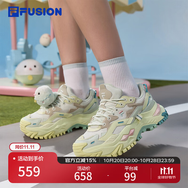 FILA 斐乐 FUSION 斐乐女鞋硬糖厚底休闲老爹鞋猫爪挂件运动鞋女 水青色/淡水色绿-GS 37.5