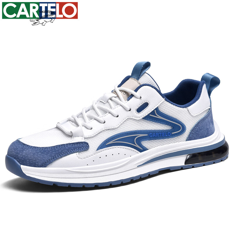 卡帝乐鳄鱼休闲鞋男鞋春秋透气网面鞋潮流百搭慢跑步防滑耐磨减震轻便运动鞋 白兰 41