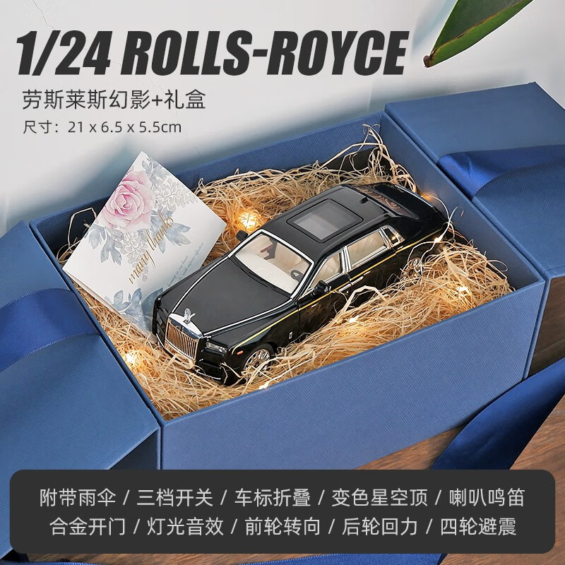 卡威(KIV)劳斯莱斯幻影车模车模型仿真合金汽车玩具男孩收藏手办摆件 劳斯莱斯幻影-黑色+礼盒
