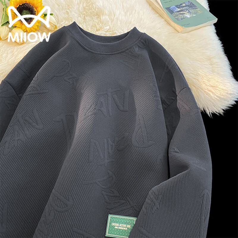百亿补贴:猫人卫衣男士春秋季重磅提花痞帅圆领宽松休闲长袖T恤上衣服打底杉 T01深灰色 L