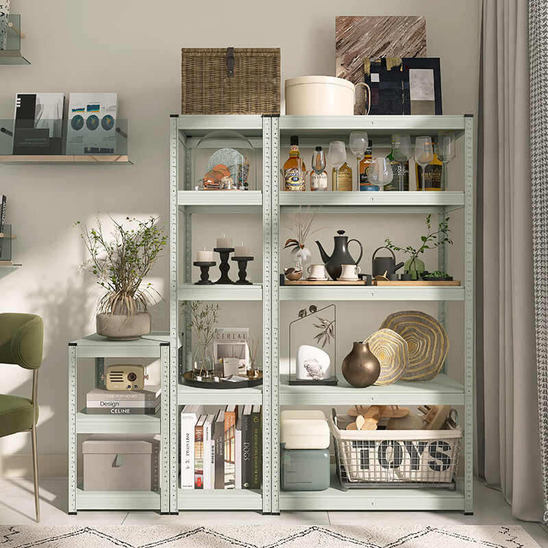 峰阳货架家用落地置物架 客厅卫生间多层可调铁艺收纳架子 灰绿色 【柜门五层架】80*40*160cm