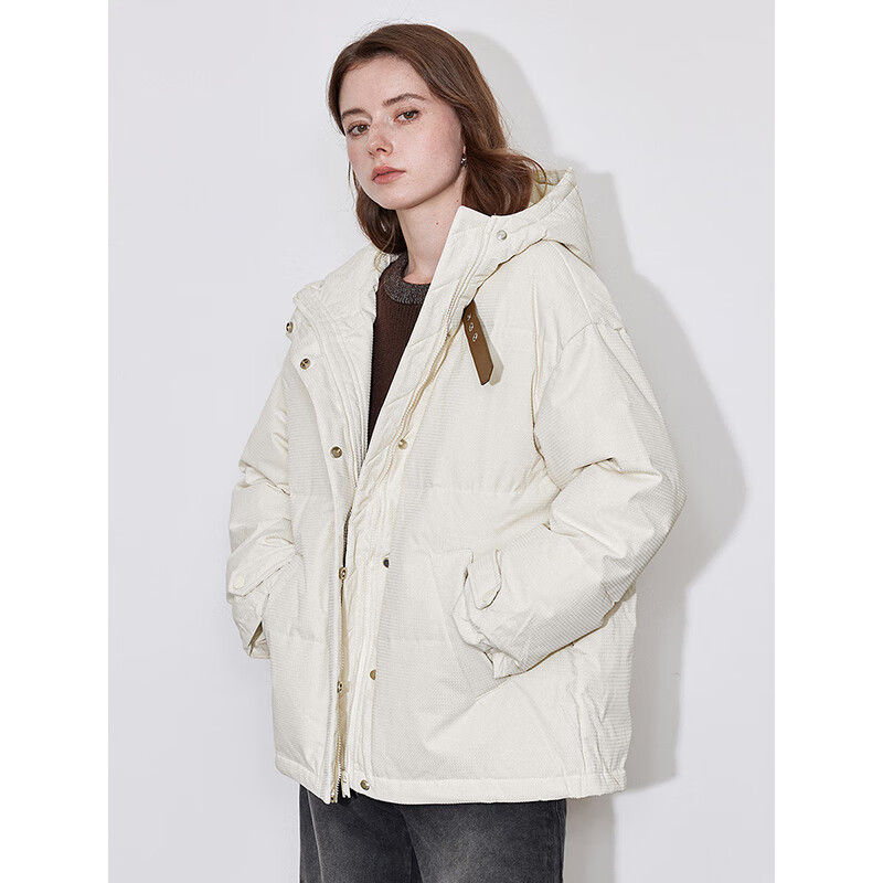 初语90白鸭绒小众皮带扣设计连帽羽绒服女2024冬季新款保暖外套