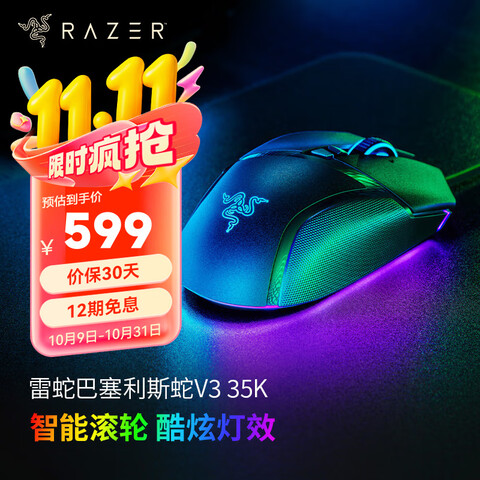 雷蛇(Razer)Basilisk巴塞利斯蛇V3宏游戏电竞鼠标RGB幻彩灯区【有线鼠标】巴塞利斯蛇V335K(传感器升级)