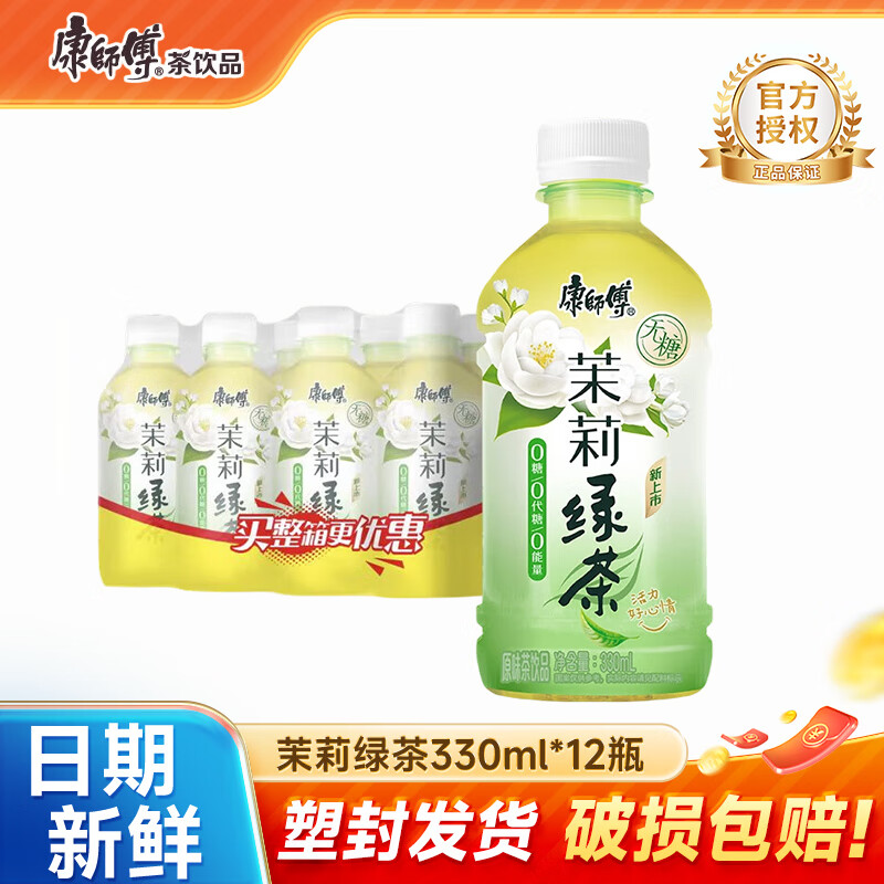百亿补贴:康师傅康师傅冰红茶小瓶饮料多口味饮品轻巧便携装整箱批发 王一博同款 茉莉绿茶(无糖)330ml*12瓶