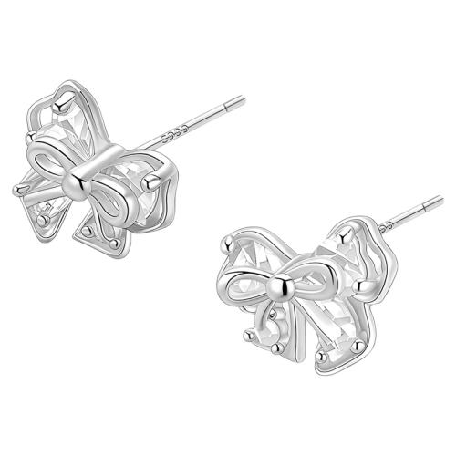 【999纯银】粉钻蝴蝶结耳钉 999纯银蝴蝶锆石耳钉女养耳洞