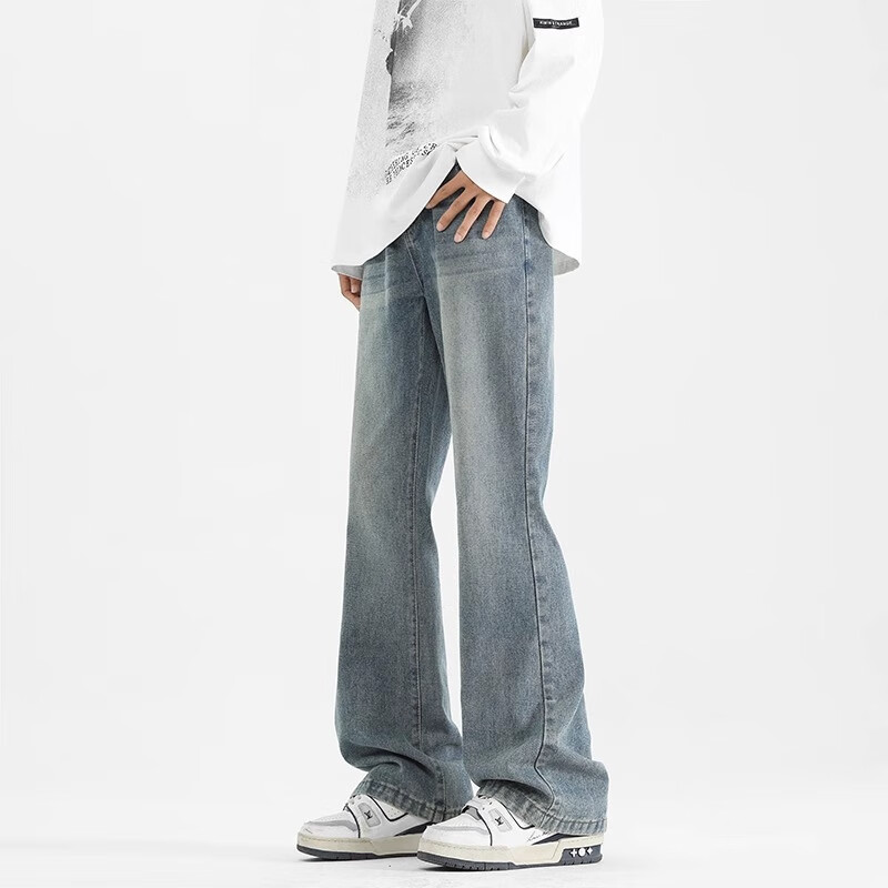 百亿补贴:FOG SKY牛仔裤微喇男生春秋季vibe修身裤子男高街宽松直筒阔腿长裤 SS-909复古蓝 XL (建议130-155斤)