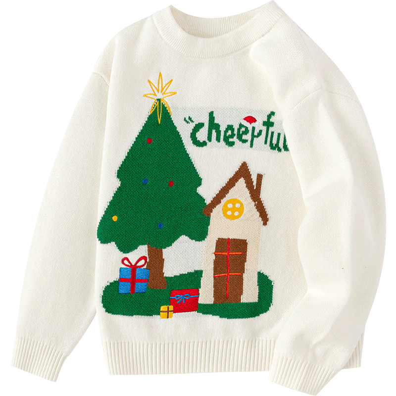 14日晚20点: 巴拉巴拉童装儿童毛衫男童女童圣诞毛衣秋冬装套头衫宽松 白色调130 cm