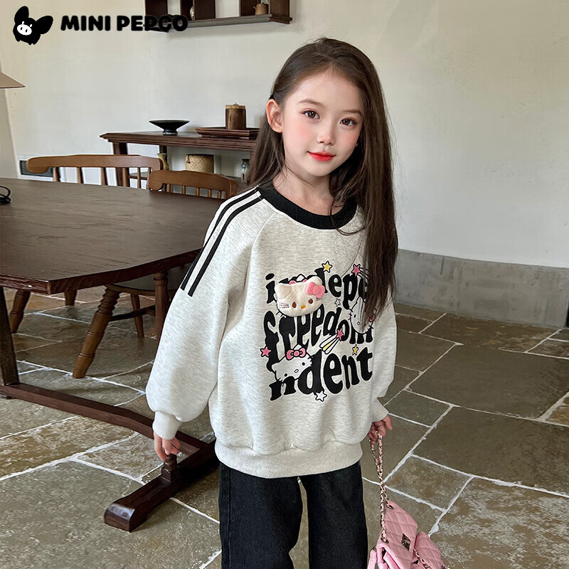 小猪班纳 女童卡通Kitty卫衣 浅花灰 120