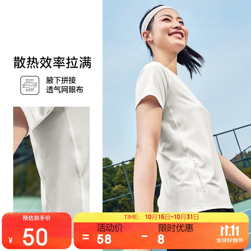 百亿补贴:特步短袖女子运动T恤夏季透气吸湿速干抗菌户外