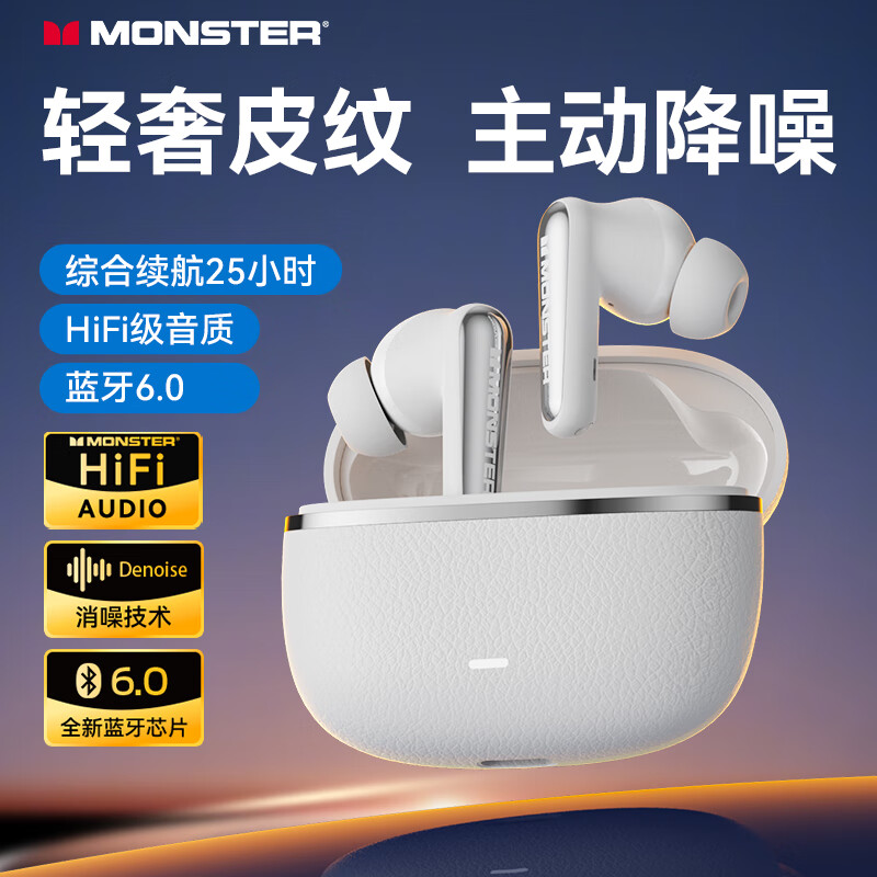 魔声(Monster)Clarity 200 ANC无线蓝牙入耳式蓝牙耳机主动降噪超长续航低延迟华为苹果手机通用 白色