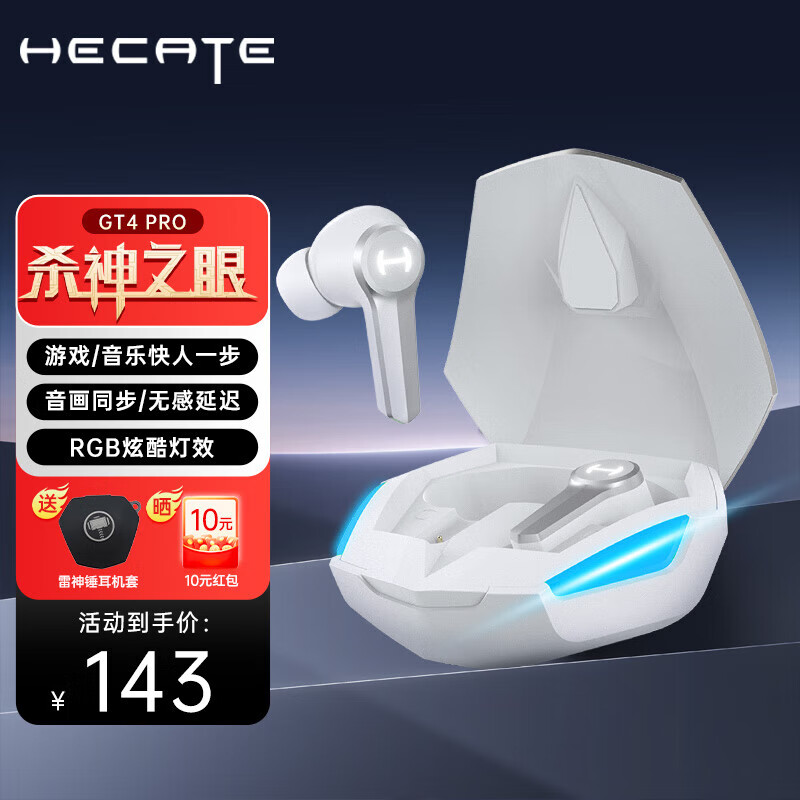 漫步者(EDIFIER)HECATE【45MS无感延迟】GT4 Pro电竞游戏专用低延迟真无线蓝牙耳机降噪入耳式运动适用于苹果华为 银白色+雷神锤耳机套