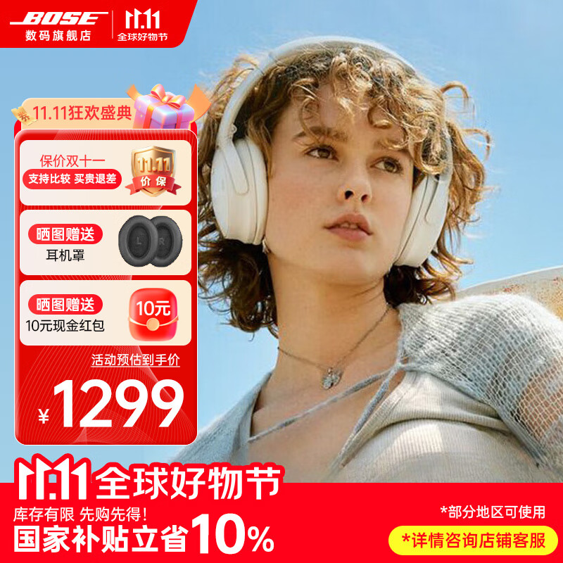 百亿补贴:Bose QuietComfort 消噪耳机系列 头戴式无线蓝牙主动消噪耳机 博士头戴式无线降噪长续航耳罩式耳机 QC45二代-沙丘灰