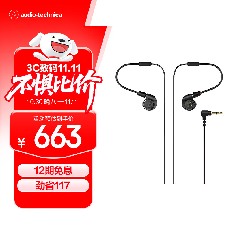 铁三角(Audio-technica)ATH-E40 专业监听双动圈入耳式耳机 老铁味女毒人声