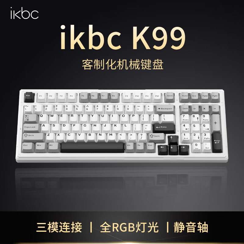 ikbc无线机械键盘有线蓝牙三模RGB客制化高颜值游戏电竞办公电脑 K99三拼静音轴
