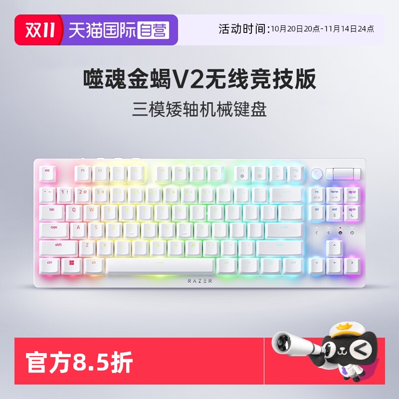 【自营】Razer雷蛇噬魂金蝎V2无线竞技白色87键光学机械矮轴键盘