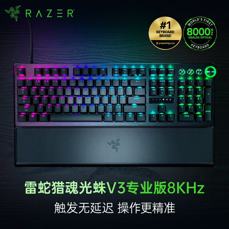 雷蛇(Razer)猎魂光蛛V3专业版 8K模拟光轴键盘 电竞游戏 超高轮询率 快速敲击 板载调节 黑 新品