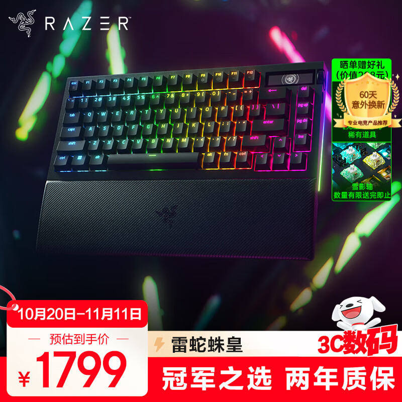 雷蛇(Razer)蛛皇 黑寡妇蜘蛛V4无线专业版75%机械游戏键盘 无线/蓝牙三模 热插拔客制化 OLED屏 GASKET结构